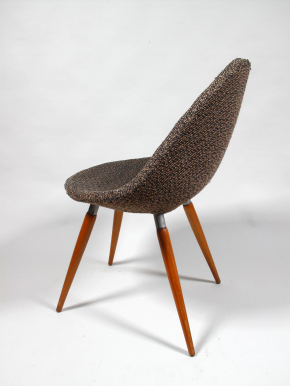 Designer: Miroslav Navrátil (?)Výrobce: Vývojový nábytkářský průmysl Brno (?)Provenience: ČeskoslovenskoDatace: 60. léta 20. stol.Materiál: laminátová skořepina, čalounění, bukové nohy,Rozměry: 82 x 57 x 43,5 cm (V x Š x V sedáku)Stav: čištěno, konzervovánoCena: nedostupnéProvádíme čalounění sedacího nábytku. Nabízíme velké množství luxusních potahových látek světových i českých výrobců.