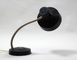 Praktická stolní polohovací lampa. Stínidlo a podstava propojeny kovovým „husím" krkem. Lampa byla demontována, vyčištěna, revidována, sestavena.