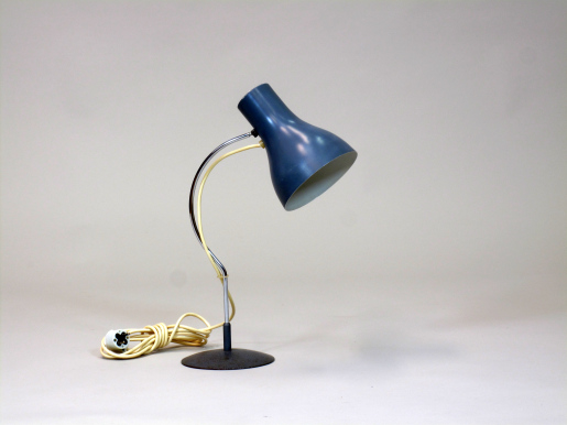 Kovová nastavitelná stolní lampa. Lampa byla demontována, vyčištěna, revidována, sestavena. Přirozené známky stáří ponechány.
